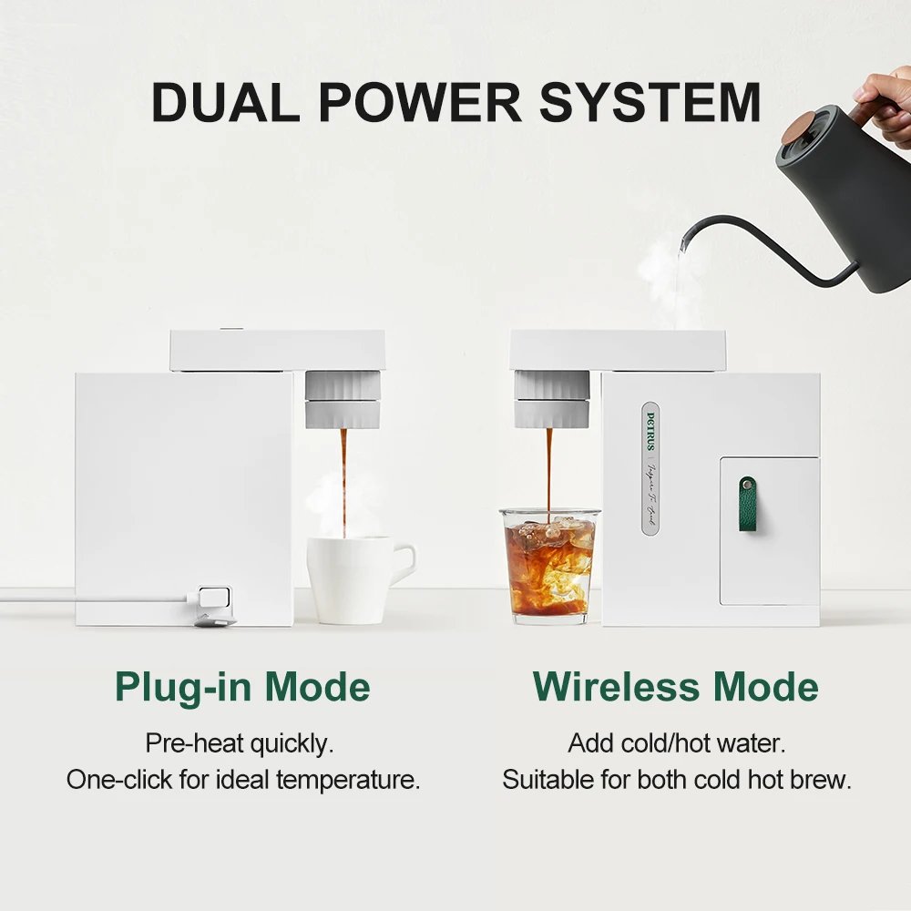 חופש ניידות (Dual Power Mode): המכונה תומכת בשימוש משולב – חיבור ישיר לחשמל (220V) לשימוש קבוע, או עבודה על סוללת ליתיום נטענת בקיבולת 2000mAh. זהו הפתרון המושלם למי שרוצה קפה טחון טרי גם בפיקניקים או במקומות ללא גישה לשקע זמין.