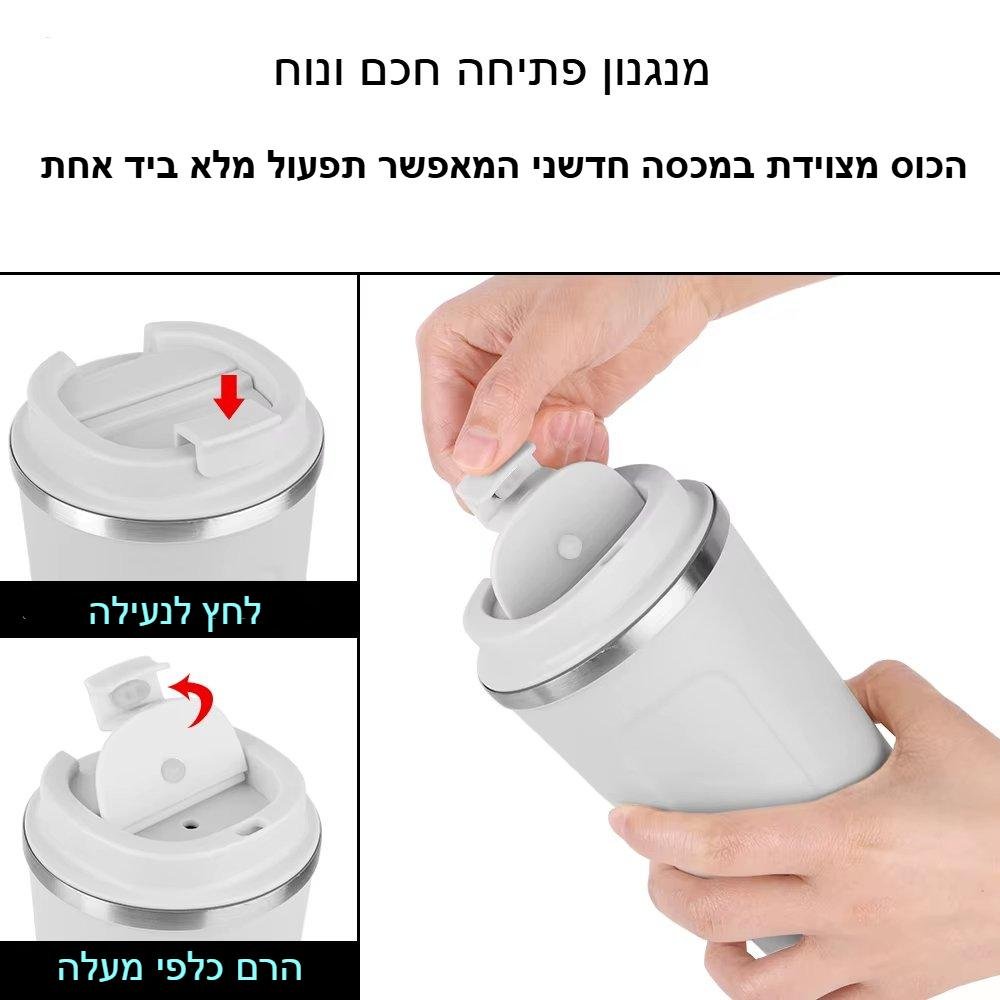 ספל תרמי לקפה ולשתייה חמה – נירוסטה כפולה, אטום לנזילות
